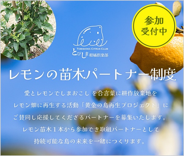 今の苗木はまだ赤ちゃんで実をつけるまで3年ほどかかります。実るまでは、お届けするレモンは同じとびしま海道で育ったレモンになります。温かい目で末長く見守っていただけると幸いです。